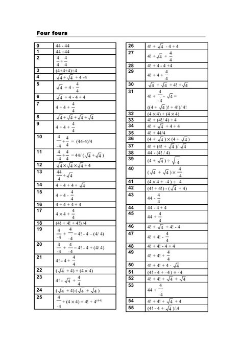Download four fours answers 1 100 Epub